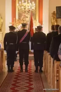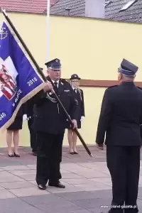 Po mszy św. strażacy, wraz z zaproszonymi gośćmi, udali się na plac w pobliżu świetlicy wiejskiej, gdzie odbył się uroczysty apel, przekazanie sztandaru ufundowanego przez gminę Miękinia oraz wręczenie oznaczeń.