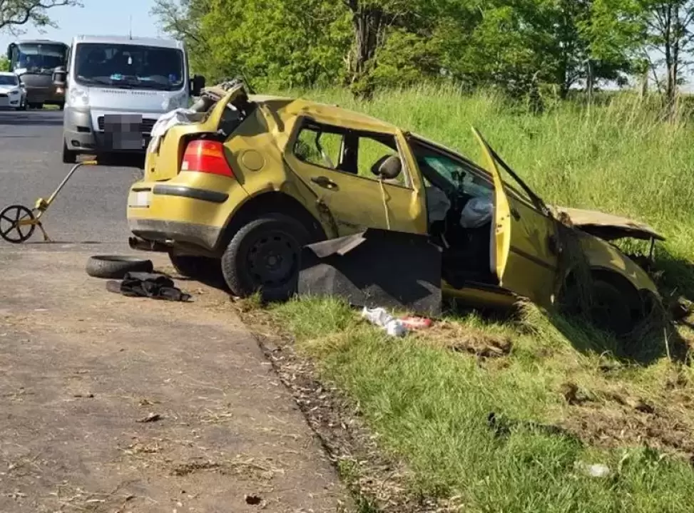 Pięcioro młodych osób w wieku od 16 do 19 lat ucierpiało w zdarzeniu drogowym, do którego doszło 3 czerwca na drodze pomiędzy miejscowościami Lutynia i Wróblowice. Wszystko wskazuje na to, że 19-letrni mieszkaniec powiatu średzkiego prawdopodobnie nie dostosował prędkości do warunków ruchu i na łuku drogi stracił panowanie nad pojazdem, zjechał na prawe pobocze, a następnie dachował.