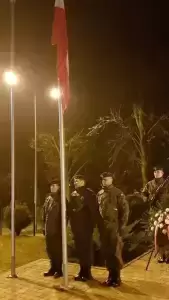 Po odczytaniu apelu pamięci oddana została salwa honorowa. Następnie przedstawiciele gminy, oraz wielu instytucji i organizacji, złożyli wiązanki pod pomnikiem. Chwilę później orkiestra dęta zagrała "Pieśń Legionów".