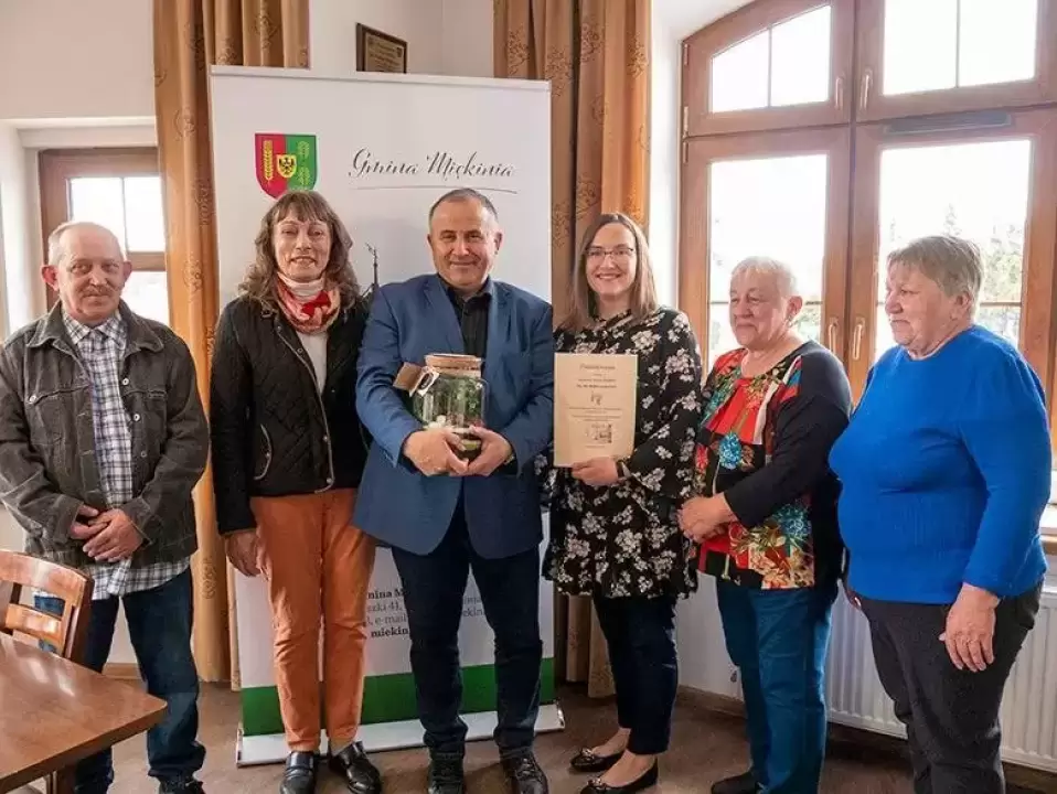 Goście wręczyli burmistrzowi podziękowanie za zrealizowanie inwestycji polegającej na rozbudowie oświetlenia drogowego w ich miejscowości.