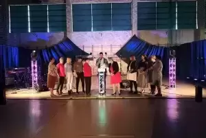 Na zorganizowane w hali sportowej w Miękini spotkanie z okazji Dnia Kobiet przybyło sporo pań, które między innymi spędziły miło czas przy utworach w oryginalnym wykonaniu Pawła Wenderskiego.