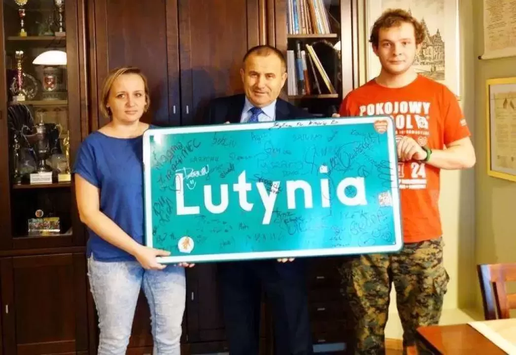 Na licytację trafi m.in. lutyńska tablica z podpisem Jurka Owsiaka, którą wójt gminy Miękinia Jan Marian Grzegorczyn odebrał od Jarosława Czuchty z Pokojowego Patrolu.