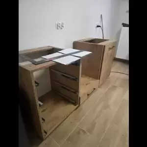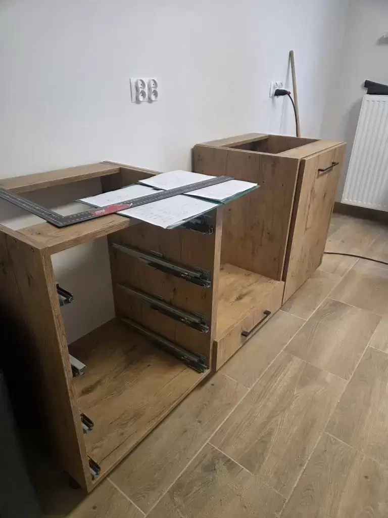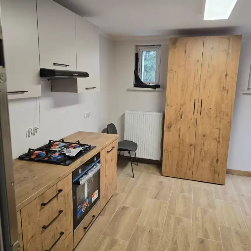 Trwa montaż mebli kuchennych i AGD w świetlicy w Łowęcicach.