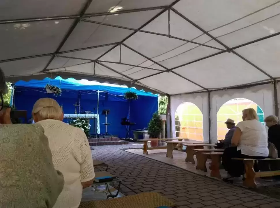 W związku z pracami remontowymi odprawianie mszy w kościele jest niemożliwe, dlatego są one celebrowane pod namiotem, tuż obok budynku kościoła. Są to wyjątkowe warunki i jak przyznaje ks. proboszcz Waldemar Kocenda, do prowizorycznego kościoła wziąć można ze sobą karimatę lub krzesełko wędkarskie.