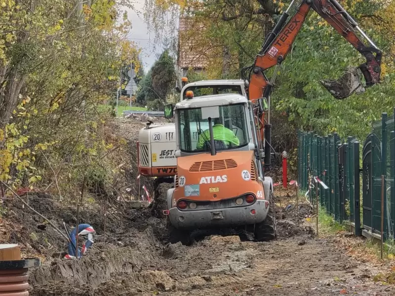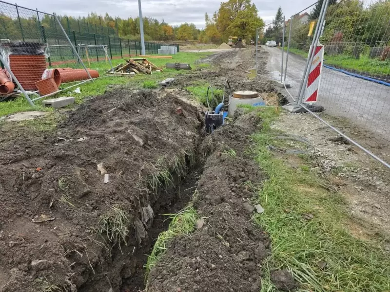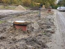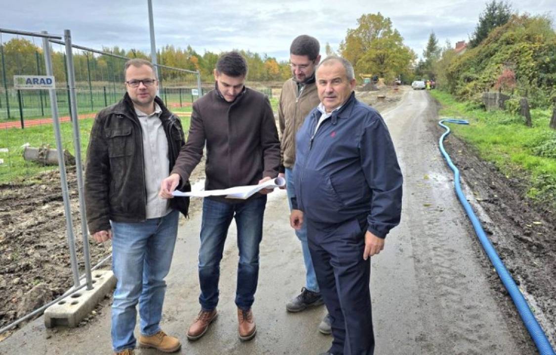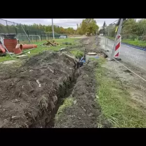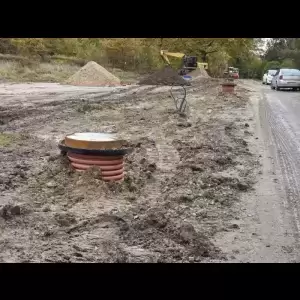 Obecnie realizowane są roboty związane z budową kanalizacji deszczowej oraz linii kablowej energetycznej pod oświetlenie uliczne.