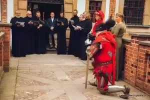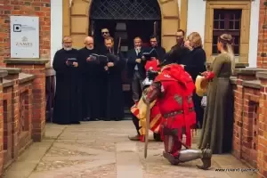 Całość rozpoczęła się procesją, której towarzyszyły dawne, średniowieczne pieśni. Pochód odebrał klucz do wrót zamku, a następnie udał się na plac turniejowy, gdzie zostali przedstawieni uczestnicy. Nastąpiło uroczyste pasowanie na rycerza Tobiasza z Trzcińska, a zaraz po nim miały miejsce Błazeńskie Chichoty Ruphusa Raphusa na katowskim pieńku Okrutnego Grzegorza.