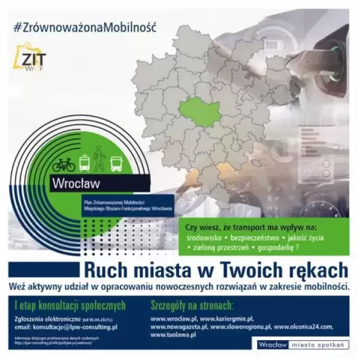 Rusza pierwszy etap konsultacji społecznych dotyczących Planu Zrównoważonej Mobilności Miejskiego Obszaru Funkcjonalnego Wrocławia, obejmującego między innymi gminę Miękinia.