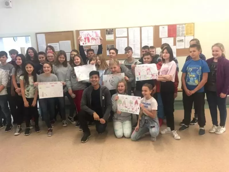 Nasi goście- Michelle z Argentyny i Rio z Indonezji opowiadali uczniom o swoich krajach- tradycjach, zwyczajach, kuchni, a także angażowali ich w różnego rodzaju gry i zabawy językowe. To miła niespodzianka zważywszy na fakt, że uczniowie chętnie biorą udział w warsztatach językowych Euroweek. W ubiegłym roku było to możliwe w ramach unijnego projektu „Szkolna Akademia Umiejętności”. Michelle i Rio zarażali charyzmą i energią, co na pewno pozytywnie wpłynie na motywację uczniów do nauki języka angielskiego. Wizyta niesamowitych gości była doskonałą lekcją tolerancji, a także dowodem, że ucząc się języków cały świat stoi przed nami otworem.
