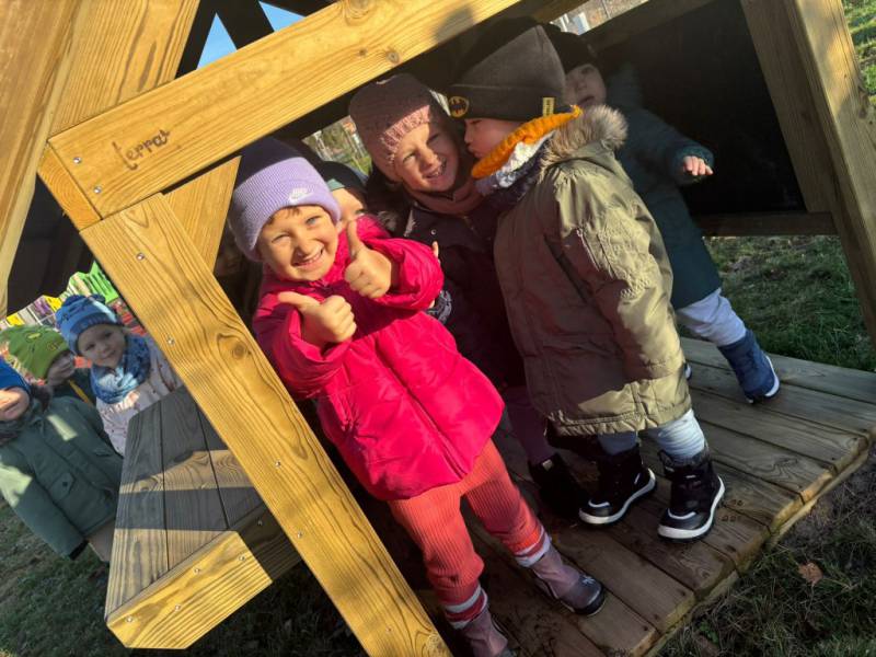 W Lutyni dodatkowo został zamontowany zestaw zabawowy z wieżą, ślizgawką i piaskownicą.
