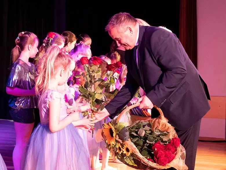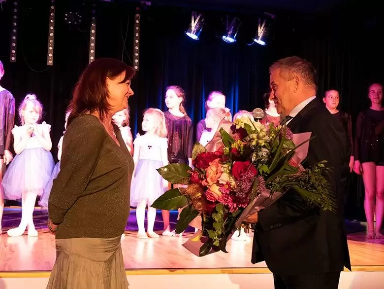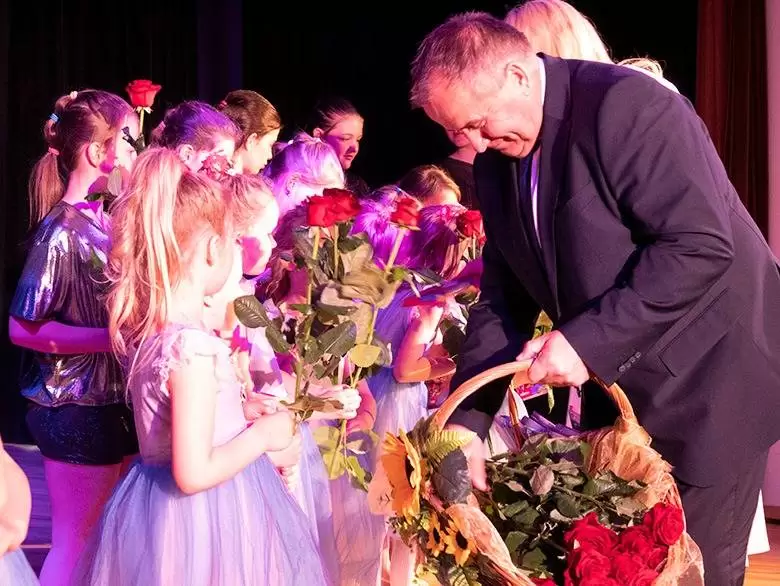 Po jubileuszowym występie burmistrz Jan Marian Grzegorczyn wręczył każdemu dziecku upominek, a także podziękował instruktorce Alinie Szymczyk za zaangażowanie i cudowne przygotowanie młodych tancerzy do występu.