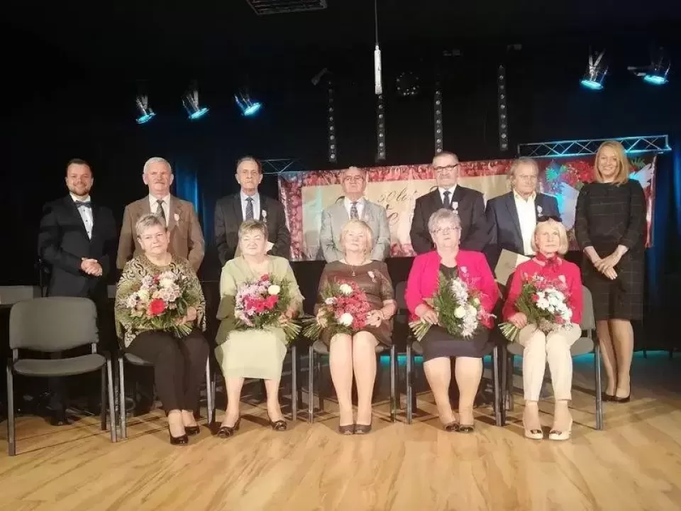Z tej okazji wytrwali małżonkowie odebrali z rąk przewodniczącego Rady Gminy Miekinia Adama Zaniewskiego i sekretarza Gminy Małgorzaty Dyrdy medale od Prezydenta RP oraz kwiaty i dyplomy pamiątkowe od wójta Gminy Miękinia.