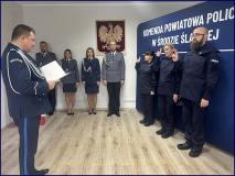 W obecności Komendanta Powiatowego Policji w Środzie Śląskiej mł. insp. Artura Dobrowolskiego, I Zastępcy Komendanta Powiatowego Policji podinsp. Marcina Wodzińskiego, przedstawicieli kadry kierowniczej oraz zgromadzonych rodzin, nowo przyjęci policjanci uroczyście wypowiedzieli słowa roty ślubowania, zobowiązując się do sumiennego i rzetelnego wykonywania swoich obowiązków na rzecz społeczeństwa.