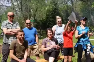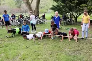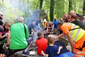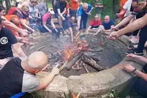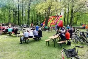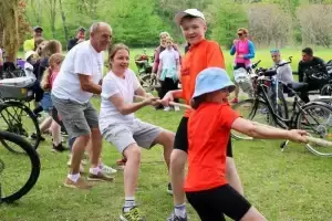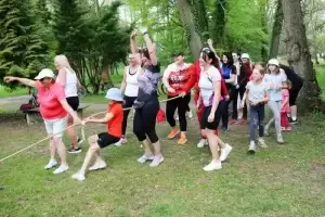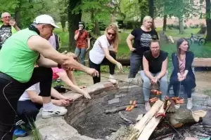 Tam w parku należącym do Zamku na Wodzie przygotowano piknik z wieloma atrakcjami. Uczestnicy częstowali się domowym smalcem, smażyli kiełbaski, a dzieci mogły skorzystać z dmuchańca i zmierzyć się w konkurencjach sportowych. Reprezentacje poszczególnych miejscowości wzięły udział również w quizie wiedzy o Polsce, a najlepsza okazała się drużyna Ciechowa. Po ponad dwugodzinnej przerwie rowerzyści udali się w drogę powrotną do Środy Śląskiej, a sportowe obchody Dnia Zwycięstwa zakończyły się pamiątkowym zdjęciem na rynku.