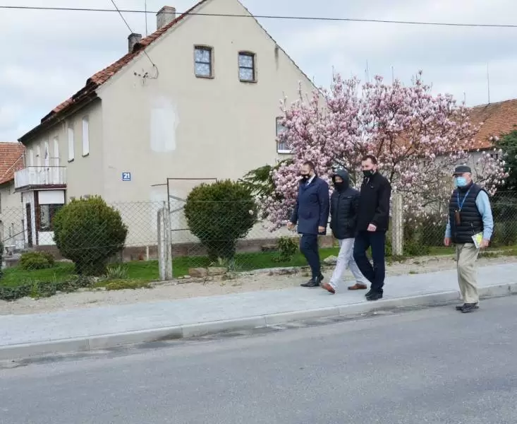 Wczoraj Grzegorz Pierzchalski - przedstawiciel zarządu powiatu i Wojciech Płaziuk - wójt Gminy Udanin, w asyście starosty powiatu Krzysztofa Szałankiewicza, radnego z Gościsławia Bolesława Stachurskiego oraz wykonawcy oficjalnie odebrali nowo wybudowany chodnik.