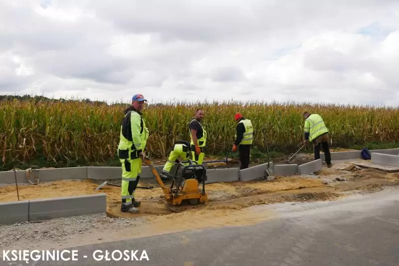 - przebudowa drogi powiatowej Księginice - Gąsiorów - Głoska postępuje zgodnie z planem. Zadanie obejmuje modernizacje 3,3 km odcinka drogi, budowę ścieżki rowerowo-pieszej, przejść dla pieszych i utwardzonych poboczy. Termin zakończenia prac to marzec 2026 r.