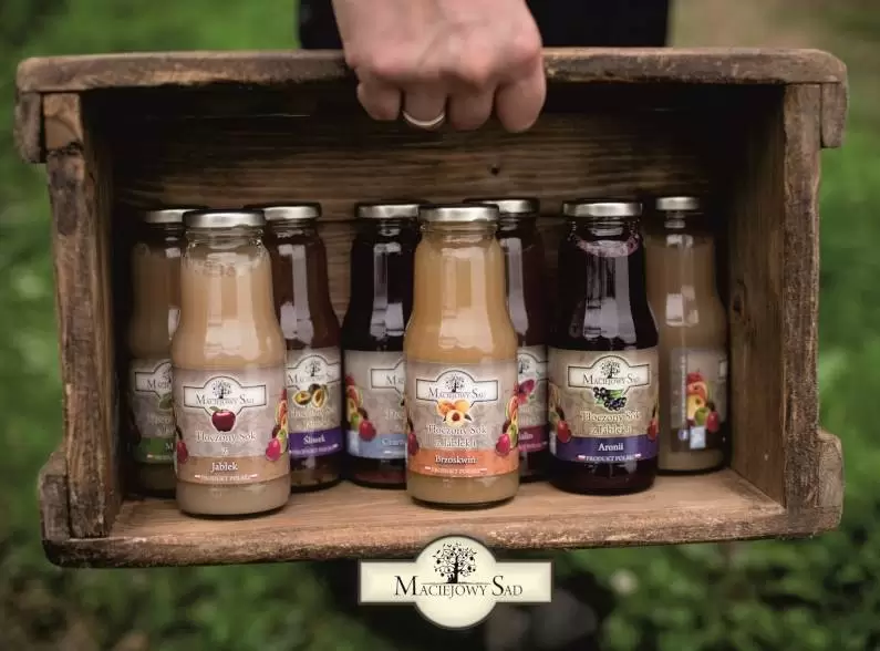 Maciejowy Sad w Lutyni to rodzinna firma, zajmująca się początkowo produkcją tłoczonych, naturalnie mętnych soków. Teraz ich oferta jest dużo szersza i obejmuje kolejne lokalne produkty.