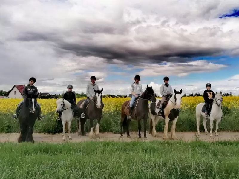 Pani Karolina z trenerami prowadzi jazdy konne dla osób początkujących (lonże), średniozaawansowanych (zastępy, tereny) i zaawansowanych (zastępy, tereny, jazdy ujeżdżeniowe i skokowe). Możliwe są jazdy zarówno indywidualne, jak i grupowe. Do dyspozycji jeźdźców jest piaszczysta ujeżdżalnia, kryta hala do jazdy konnej i zestaw przeszkód parkurowych.