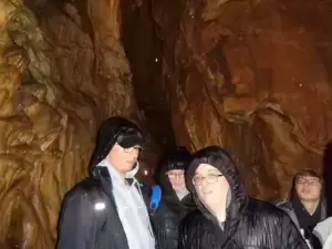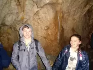 Po drugiej stronie granicy zwiedziliśmy Jaskinię Na Pomezi, mając okazję obserwować zjawiska krasowe, formy skalne i naciekowe, podziemne jeziorka i strugi wodne.. Czeski przewodnik jaskiniowy pokazał nam również śpiącego nietoperza. Była to ciekawa ekspedycja w głąb ziemi, która oczarowała klubowiczów swoją tajemniczością, pięknem i klimatem groty. U uczniowie wyszli na powierzchnię z wypiekami zachwytu na twarzy.