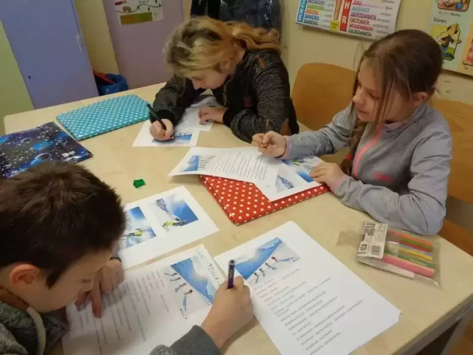 Zajęcia z języka niemieckiego poszerzyły wiadomości uczniów z zakresu leksyki, gramatyki, znajomości geografii, historii i kultury krajów niemieckojęzycznych. Spotkania były prowadzone metodą projektów, każde stanowiło odrębną całość. Na warsztatach technicznych tworzono i projektowano kartki świąteczne, walentynkowe, z okazji Dnia Kobiet, Dni Matki i Dziecka, Dni Babci i Dziadka, ozdabiano pisanki wielkanocne, wykonywano dekoracje i ozdoby z okazji Święta Bożego Narodzenia. Prowadzono lekcje opisujące rodzinę, przyjaciół, klasę, ulubionych artystów, sportowców, ukochane zwierzątka, cechy charakteru, typy osobowości, uczucia i emocje oraz samopoczucie.