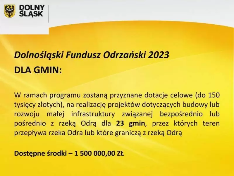Dolnośląski Fundusz Odrzański 2023 - startują konkursy dla samorządów i NGO