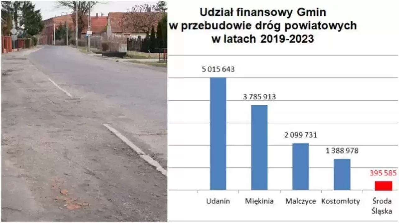 Nasz samorząd, jak każdy inny, nie posiada nieograniczonych zasobów pieniężnych. W tym samym czasie realizowane były inne inwestycje, na terenie wszystkich Gmin. Działanie Burmistrza i niezaakceptowanie propozycji było więc równoznaczne ze zmianami w projekcie przebudowy. Stracili na tym mieszkańcy Gminy Środa Śląska, ponieważ odcinek od skrzyżowania w miejscowości do lasu za boiskiem wymieniono na odcinek na terenie gminy Malczyce, która zadeklarowała udział finansowy w pokryciu części kosztów.