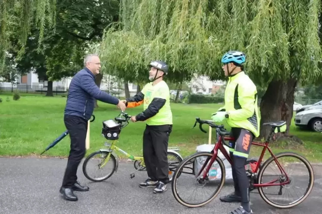 Wczoraj Środę Śląską odwiedził pan Sławomir Bednarek, który w celach charytatywnych postanowił pokonać blisko 800-kilometrową trasę na rowerze.