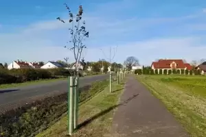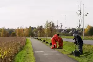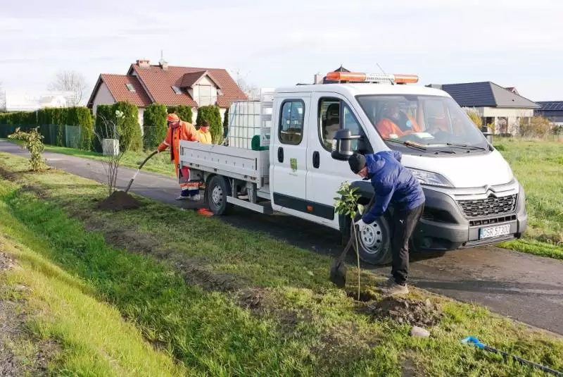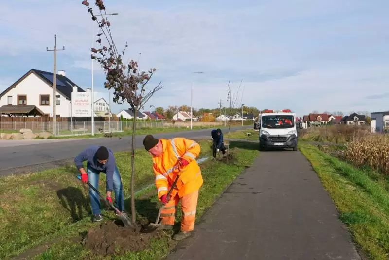 Ścieżkę przy ul. Chrobrego w Brzezinie ozdobiło ponad 70 nowych drzew, wśród których znalazły się takie odmiany jak magnolie, jabłonie, śliwy wiśniowe oraz wiśnie piłkowane. Powiatową służbę drogową tym razem osobiście wsparli przedstawiciele urzędu - starosta Krzysztof Szałankiewicz i wicestarosta Sebastian Burdzy.