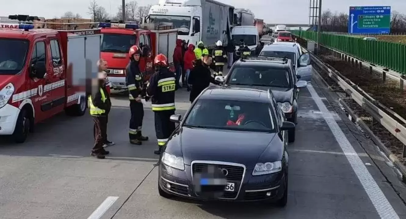 W sobotę, na 127 km autostrady A4 przy węźle Kostomłoty, doszło do karambolu z udziałem siedmiu pojazdów.