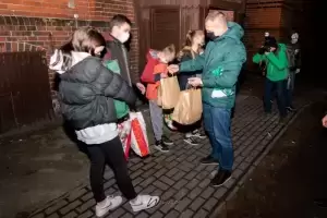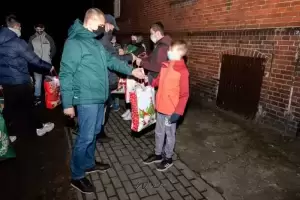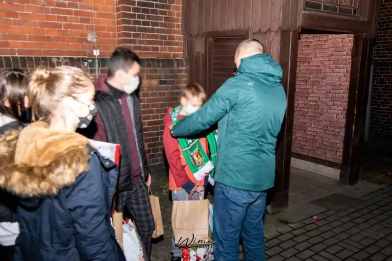 Kibice zebrali się krótko po godz. 17.00 pod ośrodkiem, dzieci czekały już w oknach. Przypominało to dawne wyczekiwanie na pierwszą gwiazdkę. Po wyładowaniu paczek z samochodów, zaskoczyło mnie jak dużo udało się przygotować Mikołajowi. Przekazanie prezentów z powodu reżimu sanitarnego początkowo nie miało tej atmosfery jak w poprzednich latach, ale to chyba dotknie nas wszystkich w te święta. Do odebrania paczek wyszła wybrana delegacja składająca się ze starszych dzieciaków, wszystko to ze względów pandemicznych. Dystans społeczny i maseczki nie ukryły wielkiej radości wszystkich zgromadzonych, spod maseczek widać było szerokie uśmiechy zarówno dzieci jak i kibiców.
