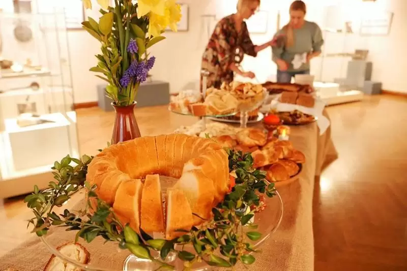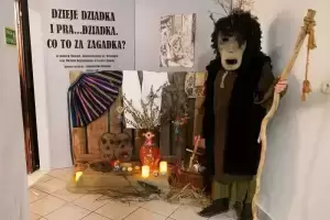 Po południu w sali wystaw czasowych odbył się kolejny z cyklu wykład muzealny. Tym razem adiunkt muzealny Anna Celuch przybliżyła temat Dziadów Wiosennych, czyli obrzędów poświęconych przodkom oraz związanych z kultem zmarłych. Spotkanie zakończyło się warsztatami robienia ozdobnych pająków oraz zaskakująco pyszną, dziadowską ucztą.