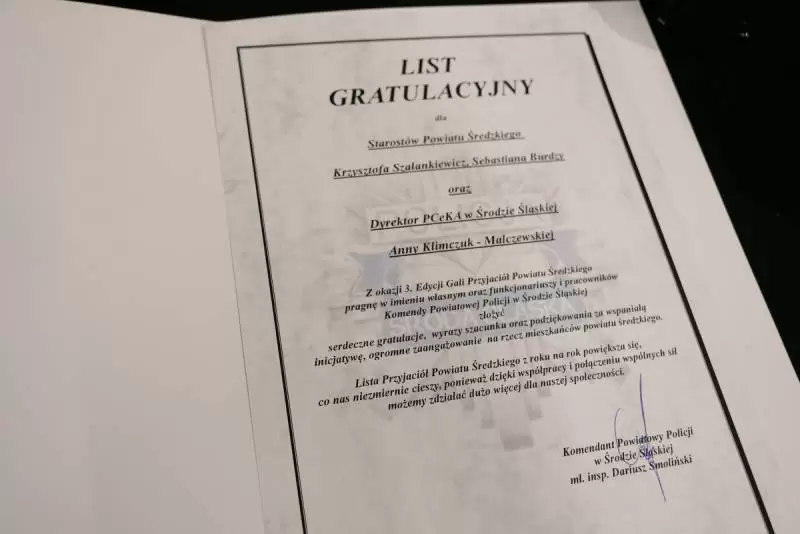 Wczoraj w Powiatowym Centrum Kultury Alternatywnej w Środzie Śląskiej odbyła się już po raz trzeci Gala Przyjaciół Powiatu Średzkiego, podczas której w wyjątkowy sposób podziękowano firmom, instytucjom i osobom wspierającym działania i inicjatywy Powiatu oraz jego jednostek organizacyjnych.