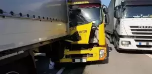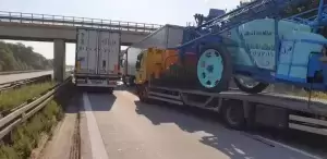 Kolizja na autostradzie. Laweta uderzyła w ciężarówkę