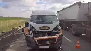 Kierujący samochodem osobowym marki Fiat, nie zdołał wyhamować, uderzając w tył poprzedzającej go naczepy samochodu ciężarowego. Na szczęście nikt nie został poszkodowany.