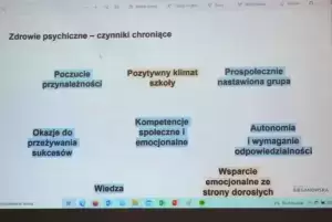 Spotkanie otworzył starosta powiatu Krzysztof Szałankiewicz, podkreślając jak ważna jest kwestia zdrowia psychicznego i to nie tylko w odniesieniu do dzieci, ale całej populacji. Wprowadzenie do tematu zrobiła dyrektorka PZPO Małgorzata Czerwiec, która przybliżyła definicję zdrowia psychicznego i wskazała jego główne determinanty. Główną prelegentką była pani Cecylia Bieganowska - psychoterapeutka i socjoterapeutka. Odwołując się do praktyki zawodowej wskazała czynniki chroniące zdrowie psychiczne oraz trzy kluczowe obszary do wypracowania w sytuacji kryzysu psychicznego. Psychoterapeutka zaakcentowała znaczenie prewencyjne codziennych drobnych rytuałów, dających poczucie satysfakcji, a tym samym chroniących nasz własny dobrostan psychiczny.