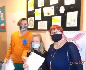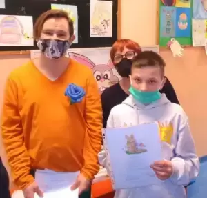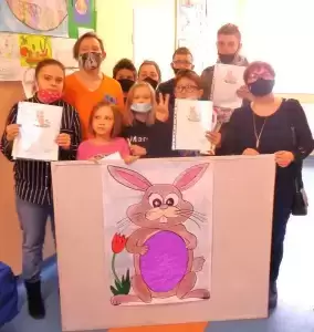 GRAND PRIX otrzymali: Kasia Bowsza za portret zajączka wielkanocnego, Patryk Ginter za rysunek kosza wielkanocnego i Michał Kaźmierczak za ilustrację pięknej pisanki.