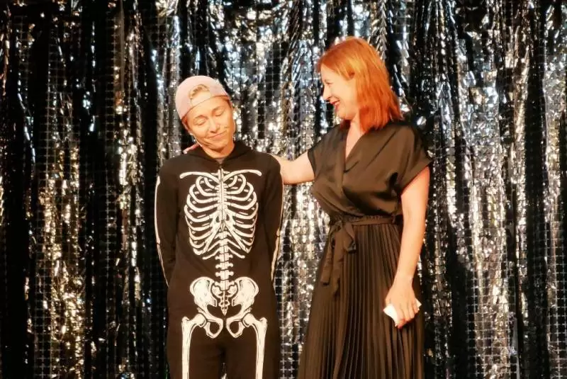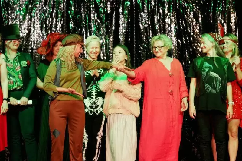 Spektakl teatralny "Kto się boi Pani Eś?” to przewrotna, a jednocześnie pełna humoru opowieść o życiu i śmierci. Niecodzienny scenariusz to dzieło pani Edyty Skarżyńskiej, opiekunki grupy i doświadczonej artystki. Aktorzy nie zawiedli średzkiej publiczności i za swój występ otrzymali gromkie i w pełni zasłużone brawa.