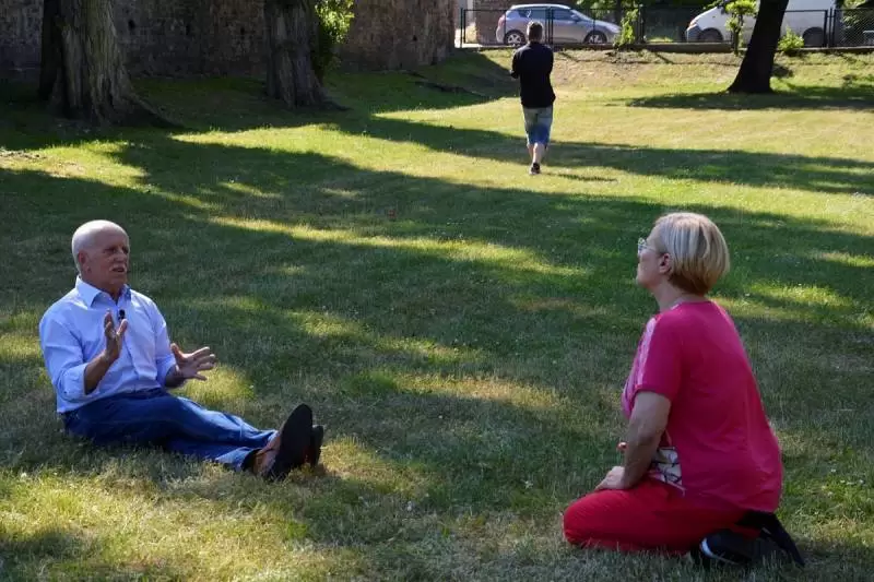 Po południu ekipa programu spotkała się ze Zbigniewem Aleksym. W malowniczej scenerii parku miejskiego kustosz średzkiego muzeum przybliżył historię miasta i murów obronnych. Wspomniał również o Napoleonie i jego wizycie w Mieście Skarbów.
