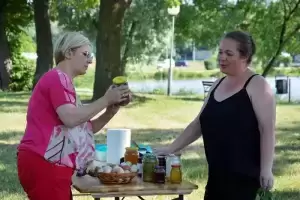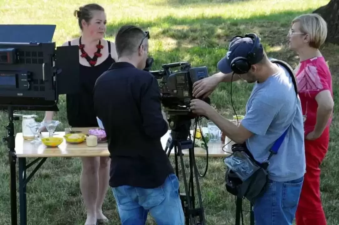 Późnym popołudniem na Kajakach na ekipę programu czekała Agnieszka Kogutek - szefowa Koła Gospodyń Średzkich i prezes Stowarzyszenia Forum Sołtysów Powiatu Średzkiego. Jej zadaniem było zaprezentowanie dowolnego przepisu z użyciem miodu. - Do programu przygotowałam pudding jaglany z truskawkami, różą damasceńską i miodem oraz lemoniadę z kwiatów czarnego bzu z miodem i limonką - opowiada pani Agnieszka i dodaje, że już wkrótce szykują się kolejne nagrania z jej udziałem. - Ekipa była bardzo sympatyczna. Wspomniałam pani Agacie o Wirtualnym Ryneczku, czyli grupie na facebook’u, którą prowadzę. Skupia ona lokalnych rolników, rękodzielników i rzemieślników. Temat tak jej się spodobał, że już niedługo ekipa znów nas odwiedzi - śmieje się pani Kogutek.