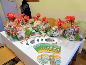 Paczki otrzymaliśmy dzięki zaprzyjaźnionym sponsorom – pani Alicji i Sebastianowi Hellon, a kolorowe książeczki o tematyce świątecznej ufundowali organizatorzy. Obdarowani nie kryli radości z pięknych prezentów i słodyczy.