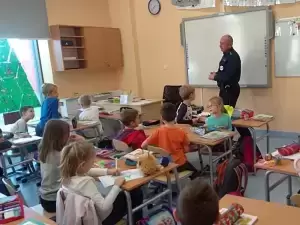Chociaż śniegu za oknem nie widać, policjanci z uwagi na zbliżającą się zimę, nie zapomnieli o kilku uwagach na temat bezpiecznych zabaw podczas tej szczególnej pory roku. Była więc mowa o zagrożeniach związanych z zamarzniętymi zbiornikami wodnymi, czy korzystaniu z jazdy na nartach, czy sankach.