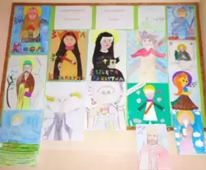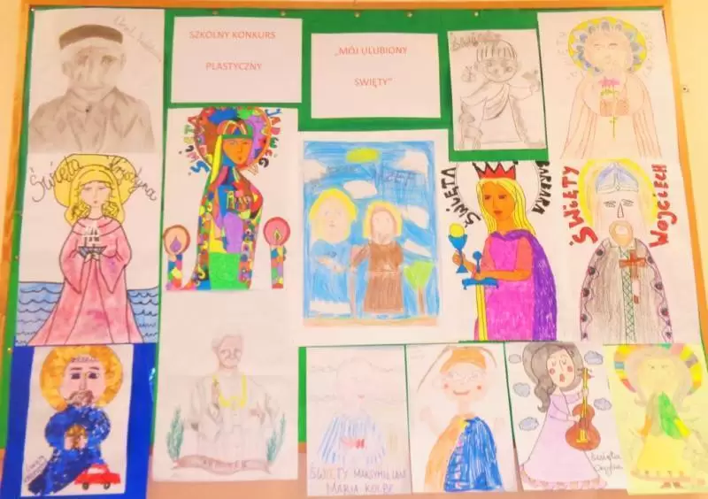 W tym roku postanowiono pogłębić wiedzę o polskich świętych, których nie brakuje w dziejach naszego Kościoła. Uczniowie chętnie odpowiedzieli na nowy temat i poszukiwali w encyklopedii oraz książkach religijnych opisu sylwetek osób kanonizowanych, aby móc je sportretować. Nie zabrakło postaci św. Jadwigi, św. Kingi, św. Barbary, św. Jana Pawła II, św. Brata Alberta Chmielowskiego, św. Maksymiliana Marii Kolbego, św. Andrzeja Boboli, św. Siostry Faustyny Kowalskiej, św. Wojciecha i wielu innych.