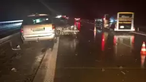 Kolizja miała miejsce pomiędzy węzłami Kostomłoty – Katy Wrocławskie. W zdarzeniu nikt nie został poszkodowany, a utrudnienia trwały około 2 godziny, a lewy pas w kierunku Wrocławia został zablokowany.