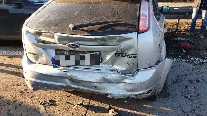 Pomiędzy węzłami Kostomłoty - Kąty Wrocławskie, podczas trwających tam prac drogowych, kierowca samochodu osobowego Volkswagen Cadyy, uderzył w poprzedzający go pojazd marki Ford Focus, ten z kolei uderzył w samochód marki Volkswagen Passat, którego siła uderzenia obróciła na pasie jezdni i wypadł na pojazd marki Mazda. Na jezdni powstał karambol, na który najechał kierowca samochodu marki Audi, któremu nie udało się wyhamować i uderzył w forda.