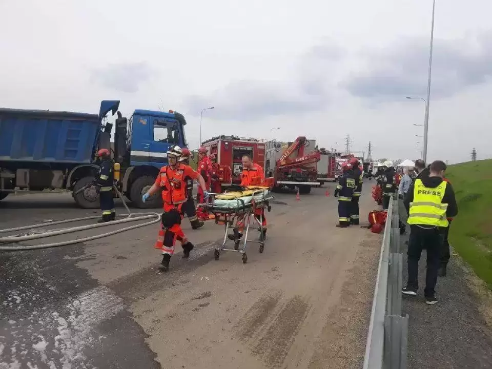 Tego samego dnia, przed godziną 14:00, dyżurny Komendy Powiatowej Państwowej Straży Pożarnej w Środzie Śląskiej wysłał zastępy straży pożarnej do wypadku na autostradzie A4.