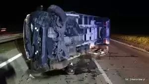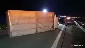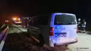 Dzisiaj nad ranem, na 117 km autostrady A4 w kierunku Wrocławia samochód dodtawczy wjechał w bariery i się przewrócił.