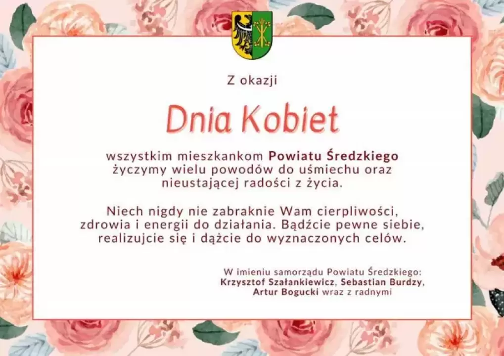 Najserdeczniejsze życzenia dla Pań przekazują włodarze Powiatu Średzkiego