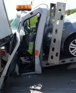 - Kierujący pojazdem typu laweta prawdopodobnie nie dostosował prędkości do warunków ruchu i nie zdążył zatrzymać swojego pojazdu, uszkadzając trzy stojące przed nim samochody ciężarowe, które zatrzymały się na pasie ruchu w związku z wystrzałem opony innego samochodu ciężarowego - wyjaśnia asp. szt. Marta Stefanowska, rzecznik prasowy Komendy Powiatowej Policji w Środzie Śląskiej.