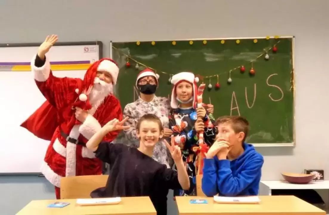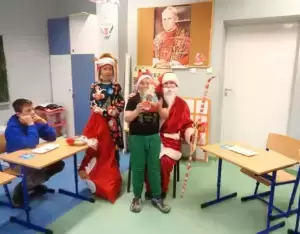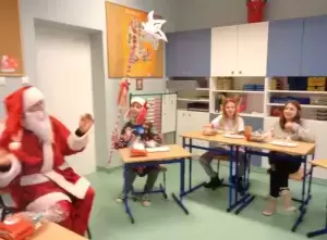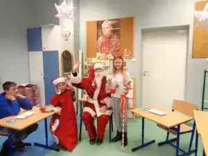 Spotkanie przebiegło w miłej atmosferze i było inną formą świętowania szkolnych mikołajek. O podarunki i uśmiech na twarzach młodych lingwistów zadbali pani Ewa Ek i pan Paweł Wenderski, nauczyciele z Ośrodka.