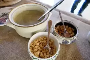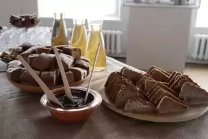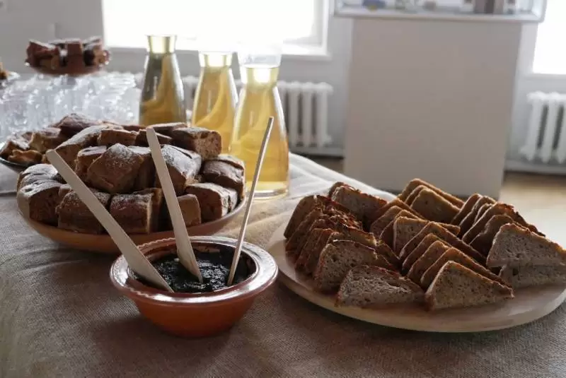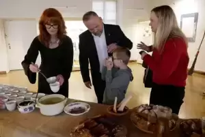 Na wieczorze w muzeum nie zabrakło też pysznego poczęstunku, tym razem była to zupa z pokrzywy, pesto z podagrycznka i ziołowe napary.