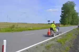 Malowanie poziome obejmie linie wibracyjno-akustyczne na newralgicznych odcinkach, linie krawędziowe i segregacyjne, piktogramy, przejścia dla pieszych oraz linie na skrzyżowaniach. Dodatkowe oznaczenie pojawi się również na wyniesionych przejściach dla pieszych. Zadanie to realizuje firma Nocek z Sadowic i Powiat zapłaci za nie 84 tys. zł. Malowanie powinno zakończyć się 31 sierpnia.